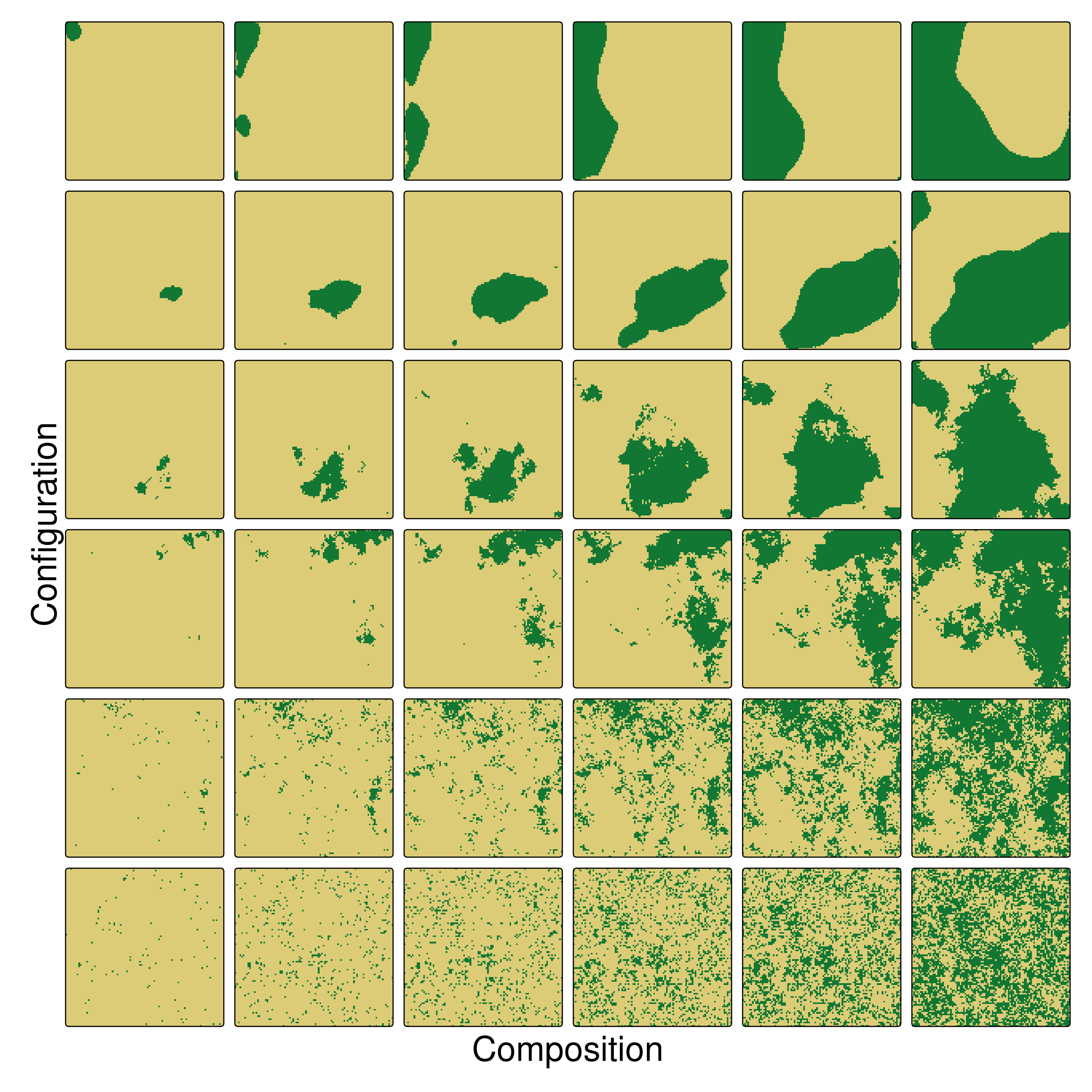 There is a relationship between an area’s pattern composition and configuration and ecosystem characteristics, such as vegetation diversity, animal distributions, and water quality within this area (Hunsaker i Levine, 1995; Fahrig i Nuttle, 2005; Klingbeil i Willig, 2009; Holzschuh et al., 2010; Fahrig et al., 2011; Carrara et al., 2015; Arroyo-Rodŕıguez et al. 2016; Duflot et al., 2017, many others..)