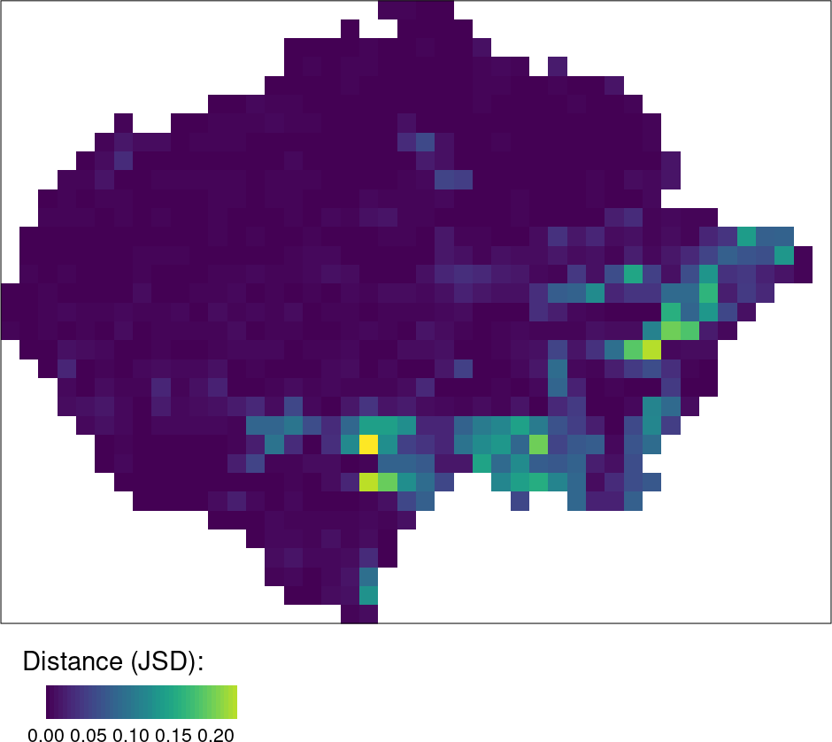 Spatial signatures can be compared using a large number of existing distance or dissimilarity measures (Lin 1991; Cha 2007).