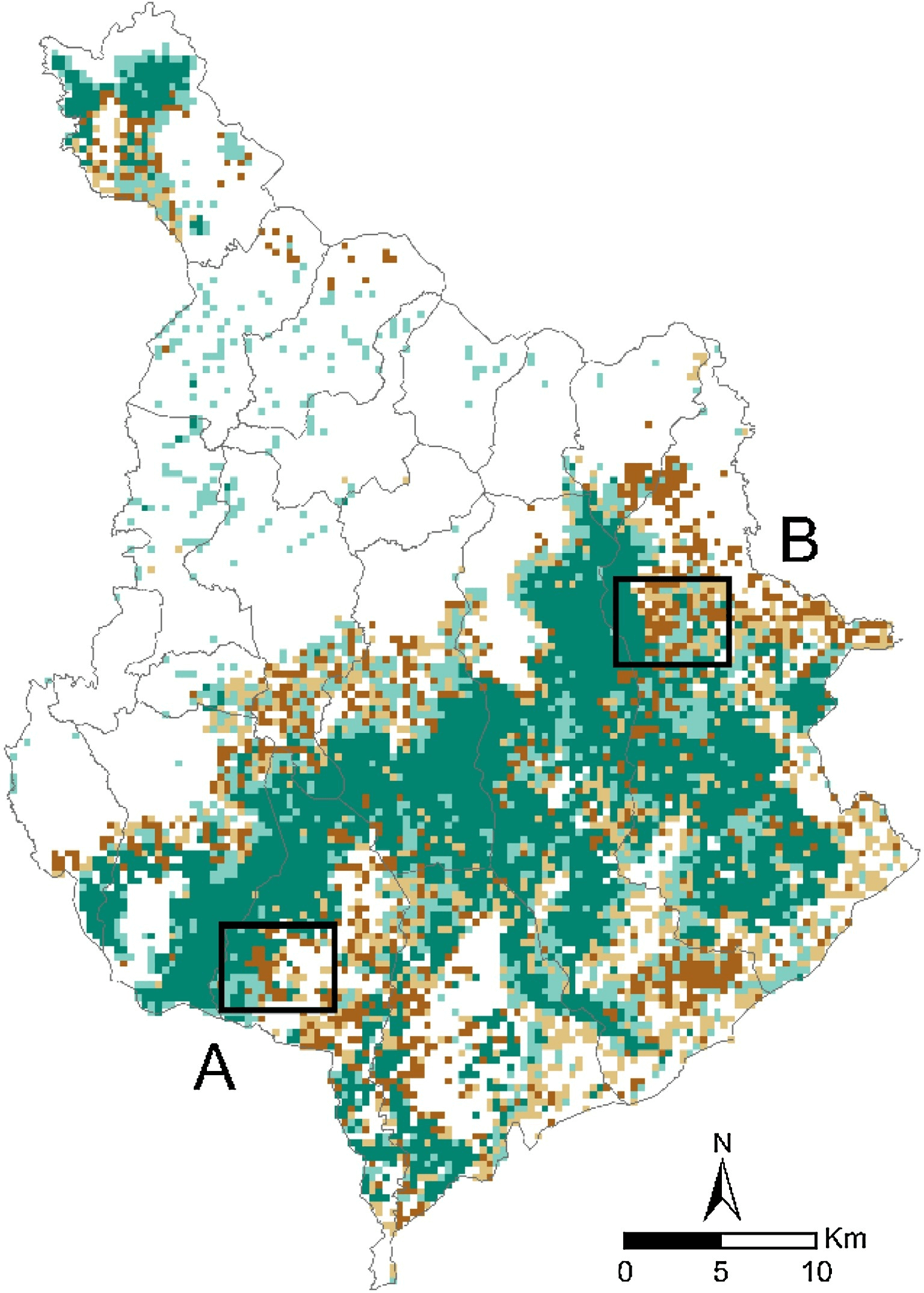Changes in spatial patterns resulting from the inclusion of small woody elements in land use maps (Golicz et al., 2021, 10.3390/land10101028)