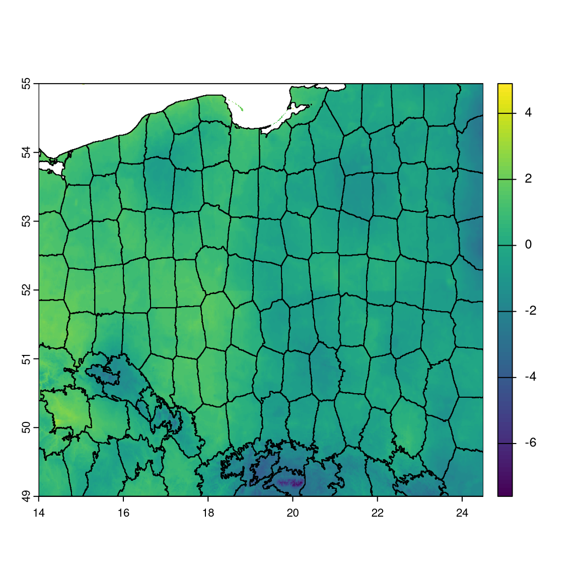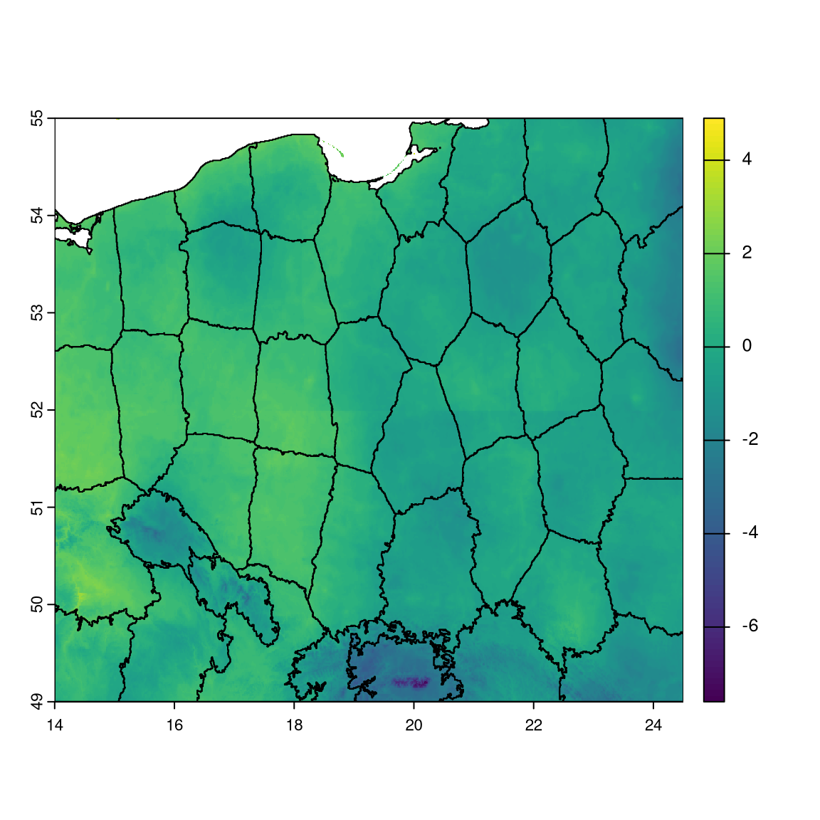 plot(cmip_tmin_pl[[1]]); plot(mintemp_zones, add = TRUE, col = NA)