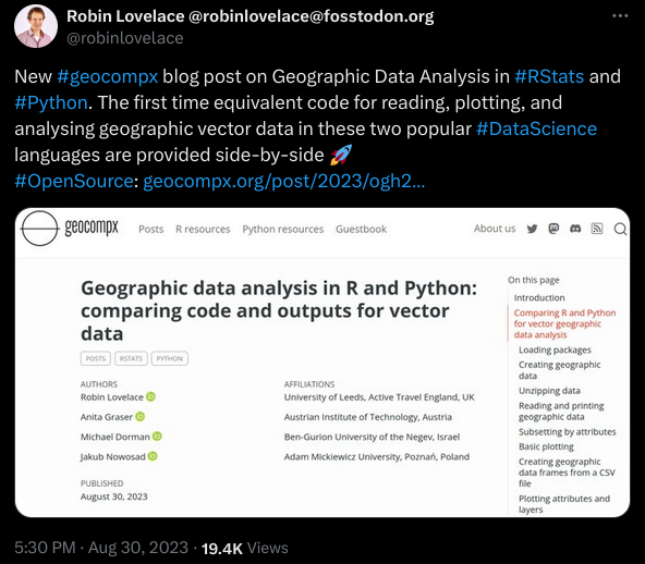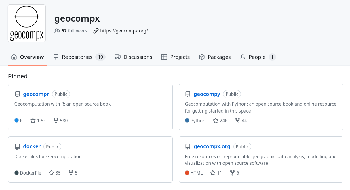 It became clear that the ‘geocompr’ name was no longer appropriate for the more multilingual nature of the project
