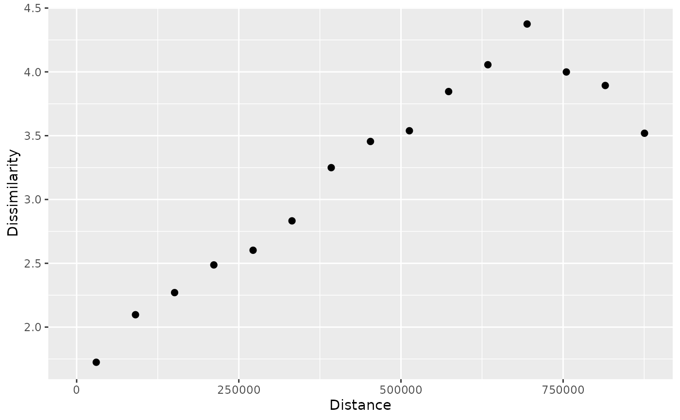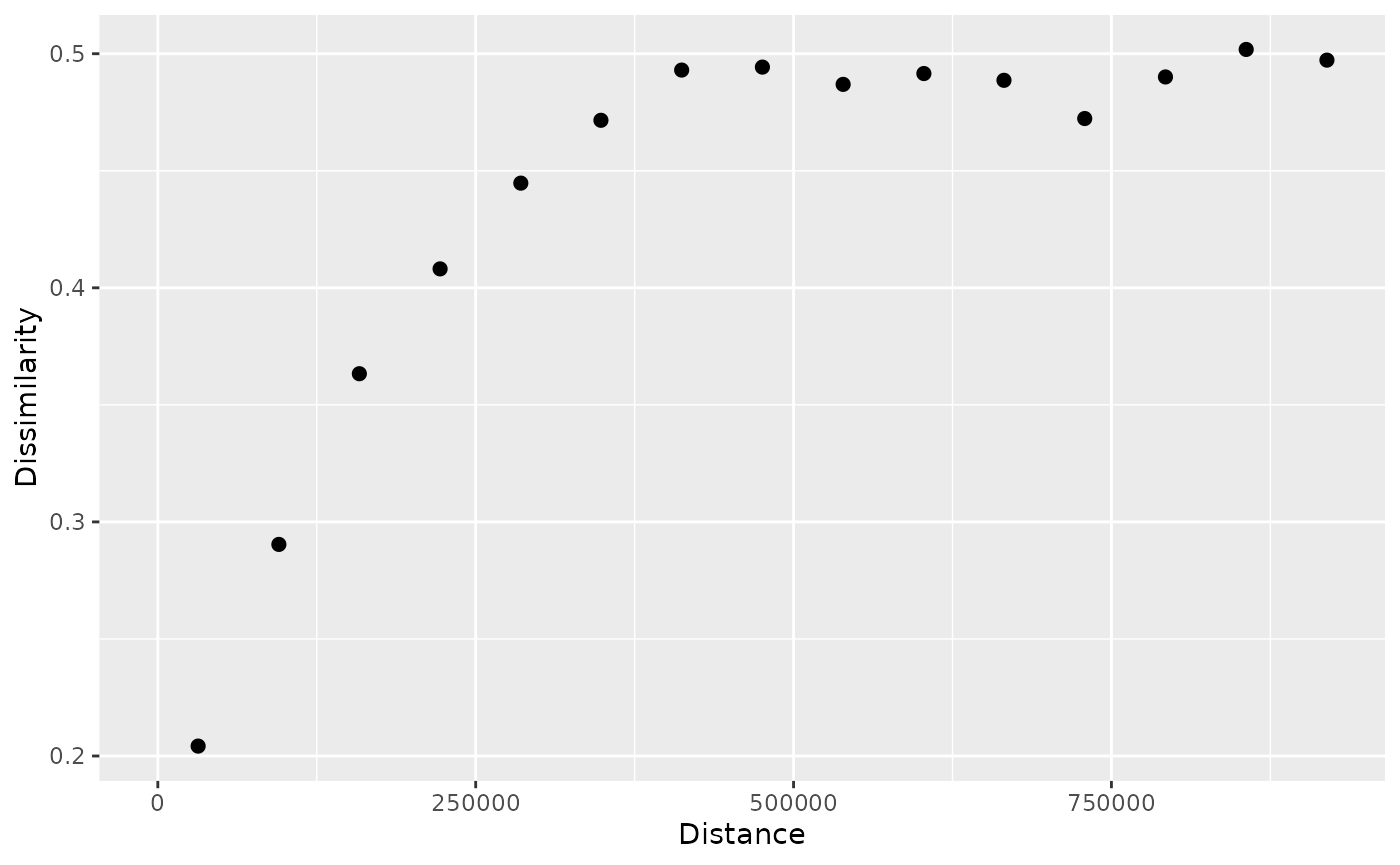 dissimilarity of values for different spatial distances. However, often