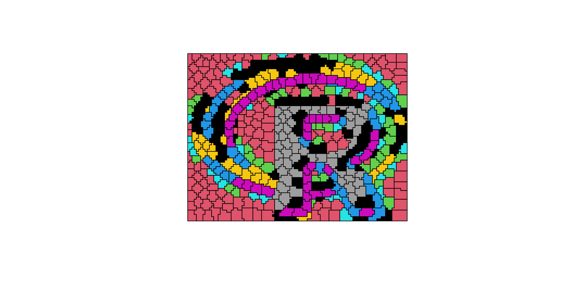 plot(sf::st_geometry(sc[0]), col = sck$cluster)