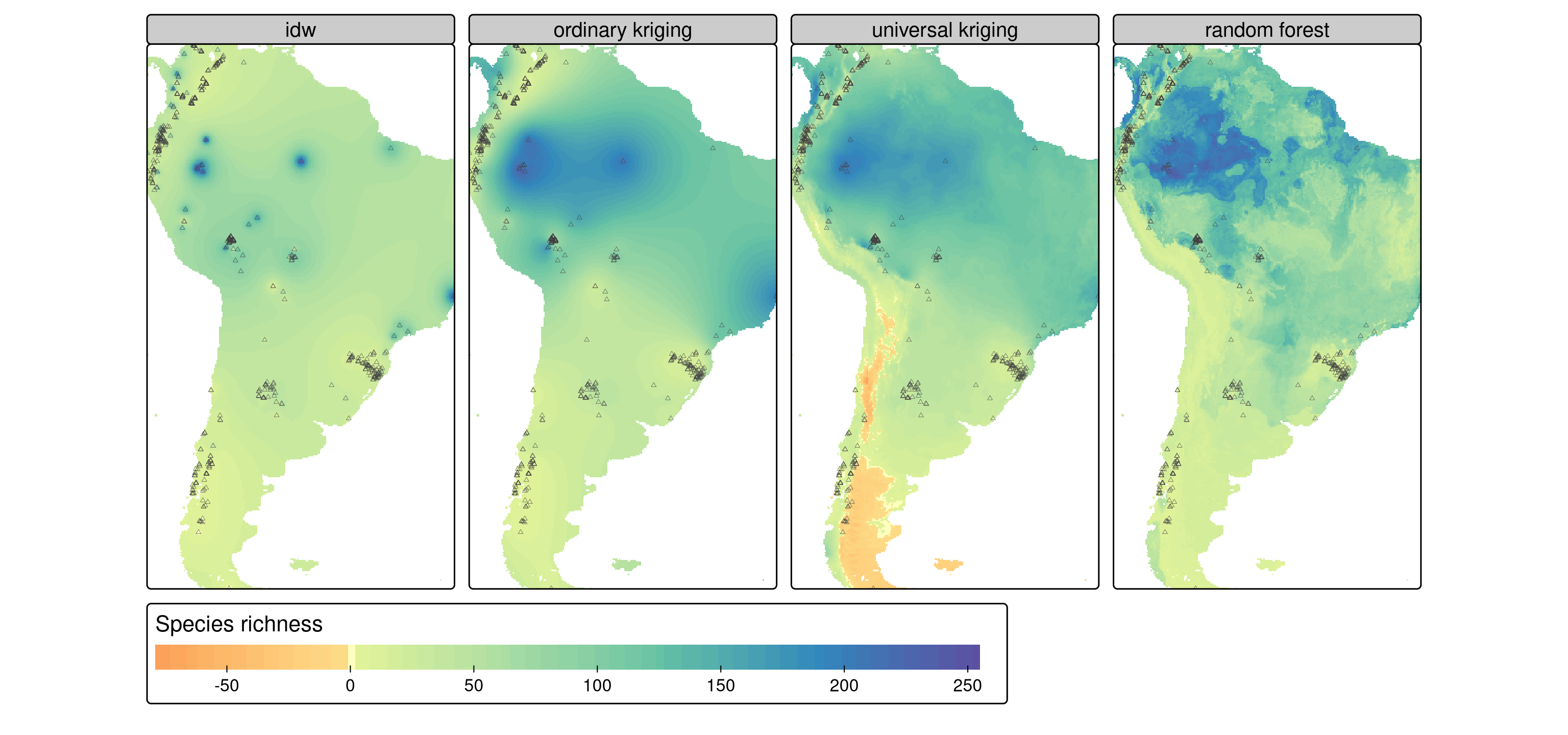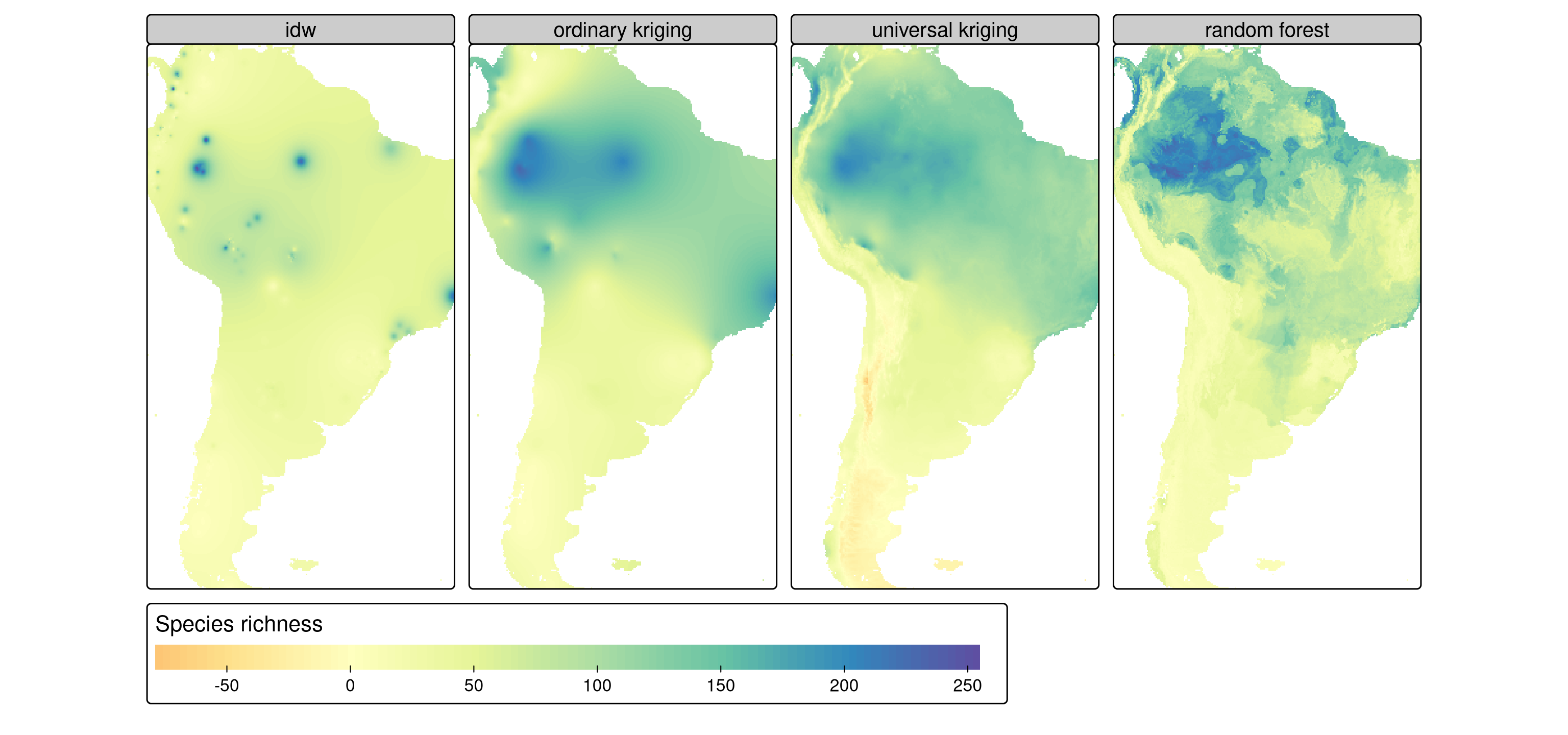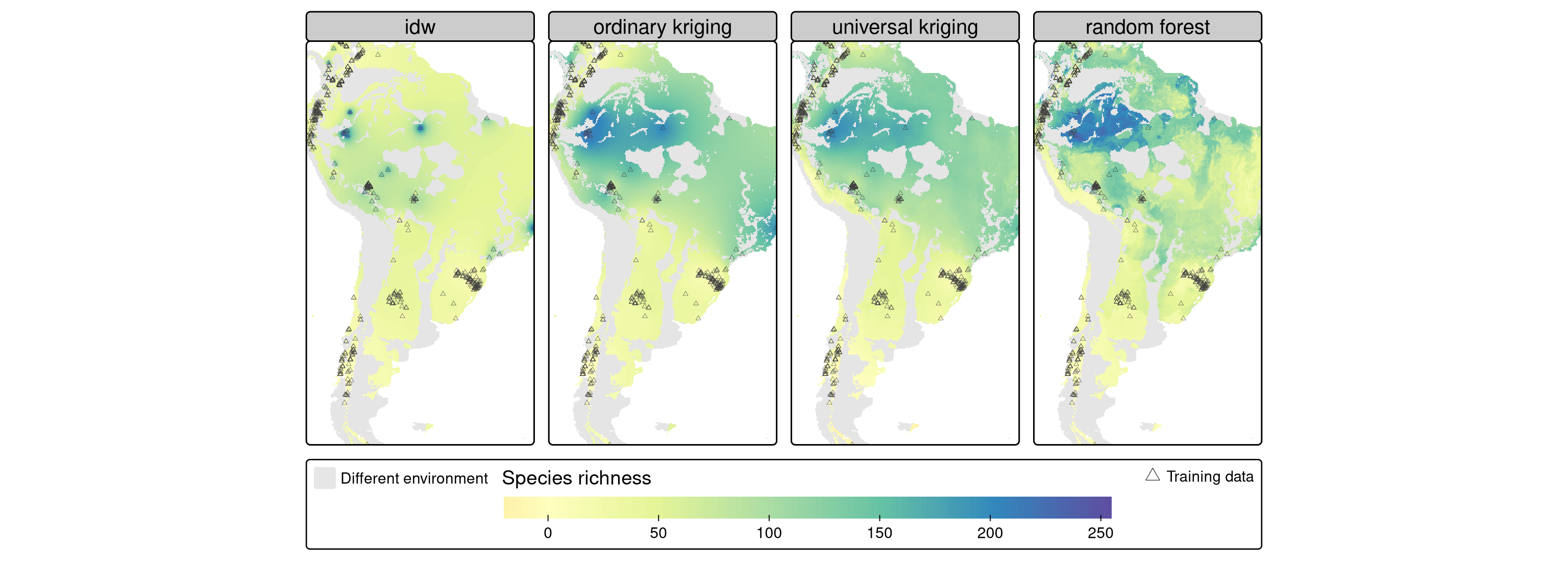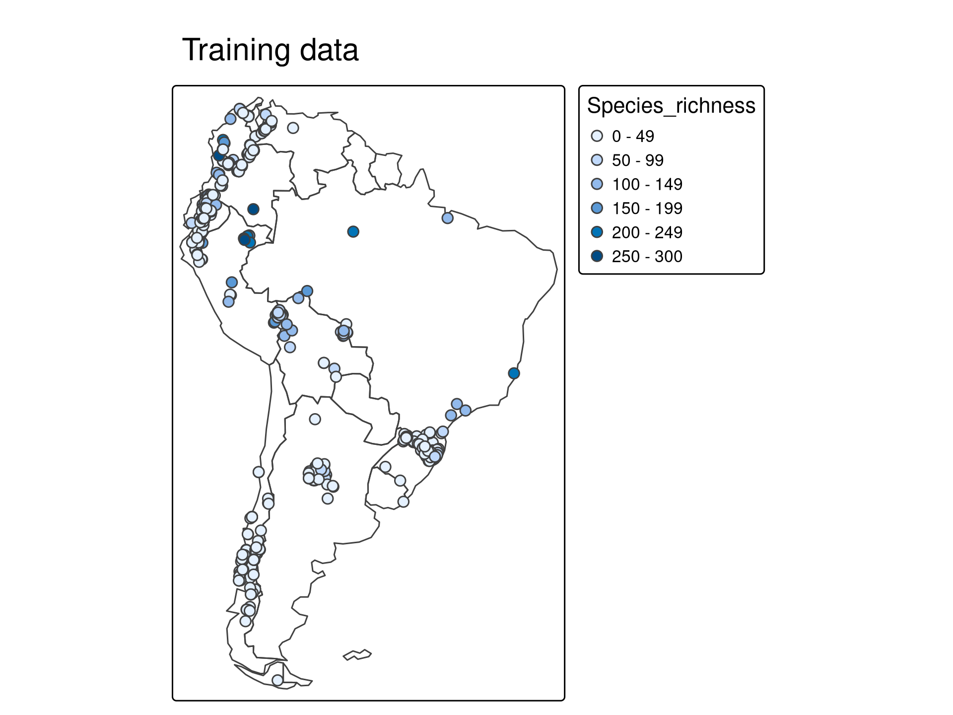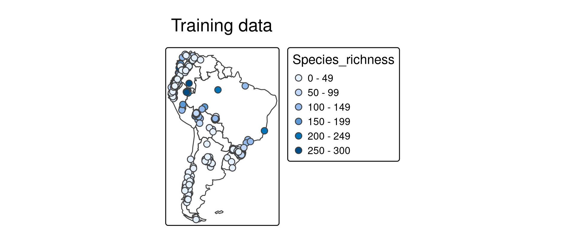 Here, we want to predict plant species richness (the number of different species present in a given area) for South America (a hard problem!)