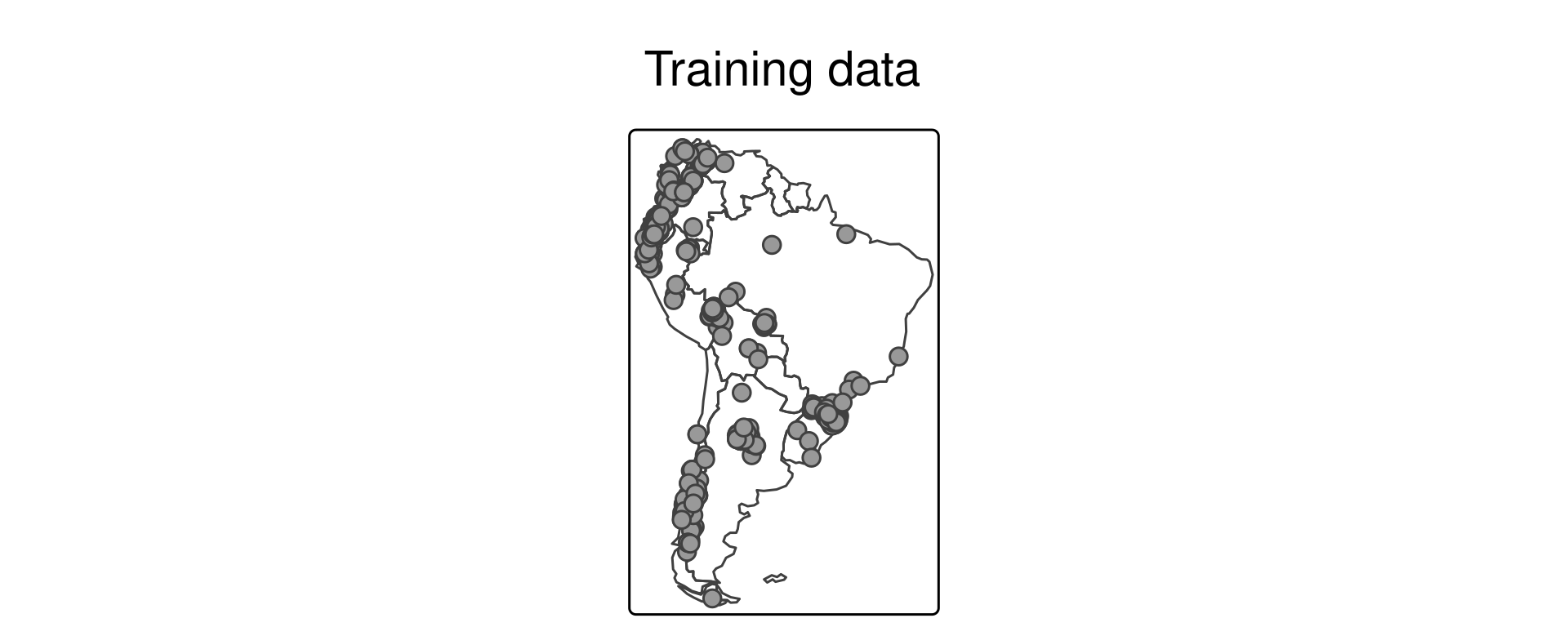 as.points = TRUE, replace = FALSE)Solution approach: Identify areas where the environment is not well represented, making predictions less trustworthy (Area of Applicability – AoA, Meyer and Pebesma, 2021).