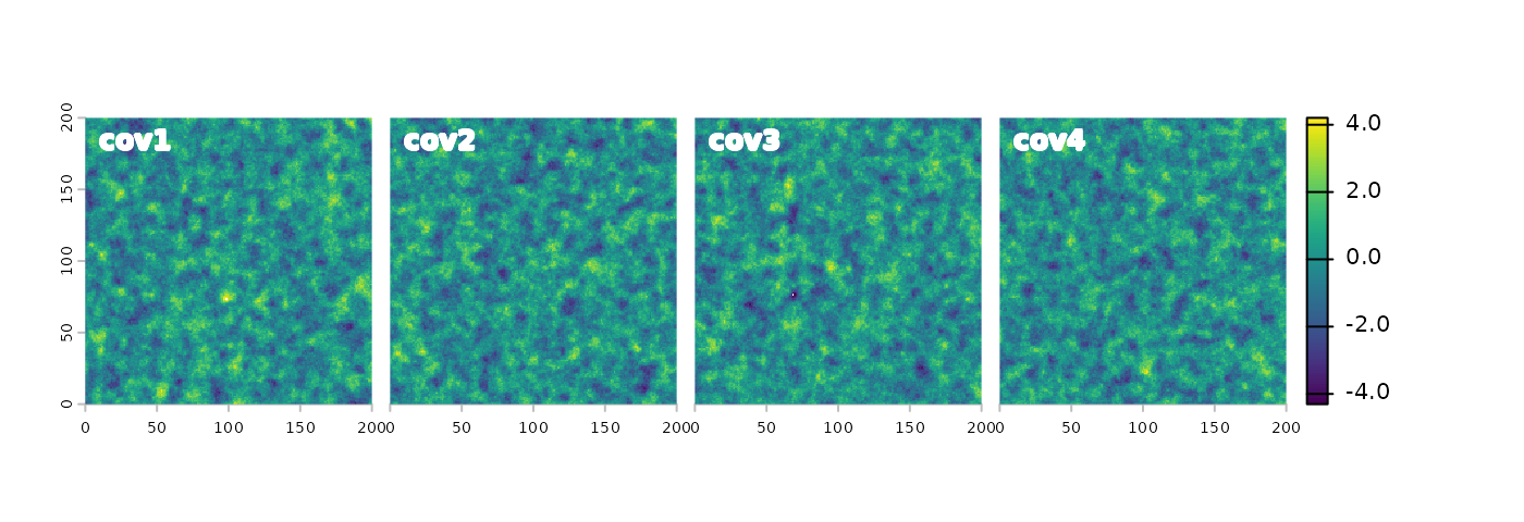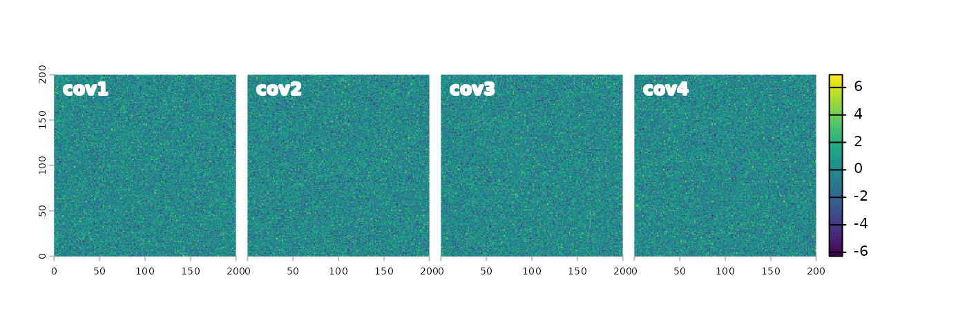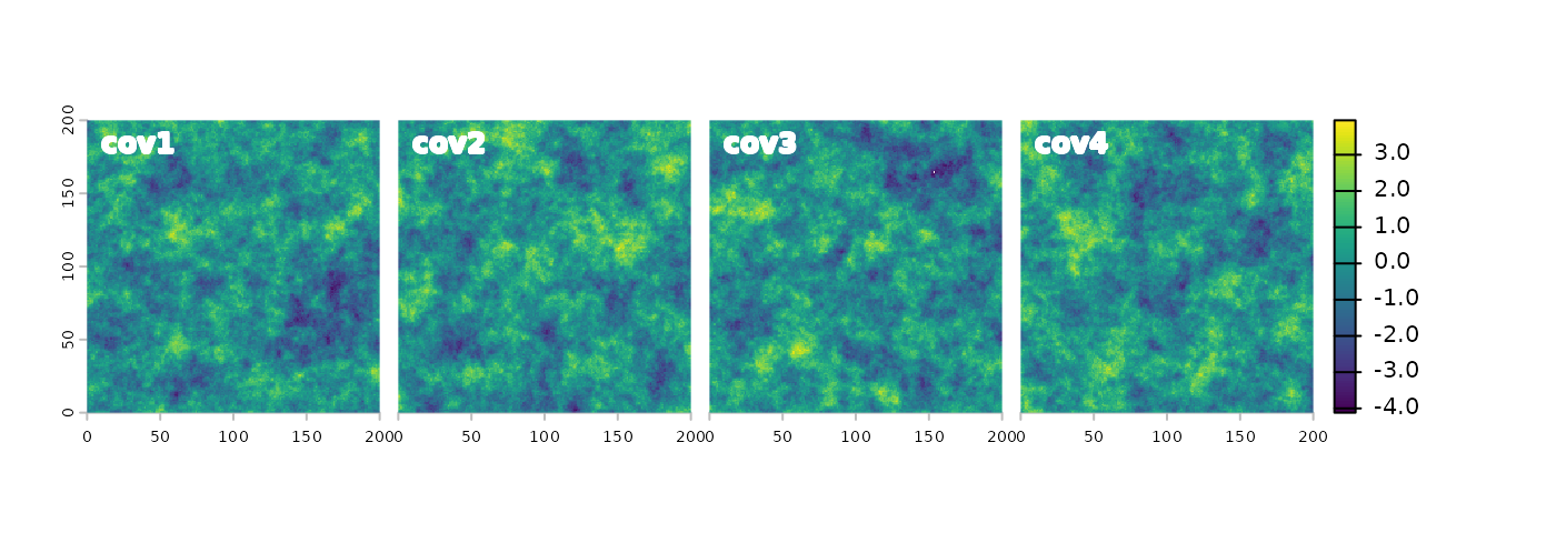 ncols = 200, nrows = 200)We can simulate any number of covariates using the